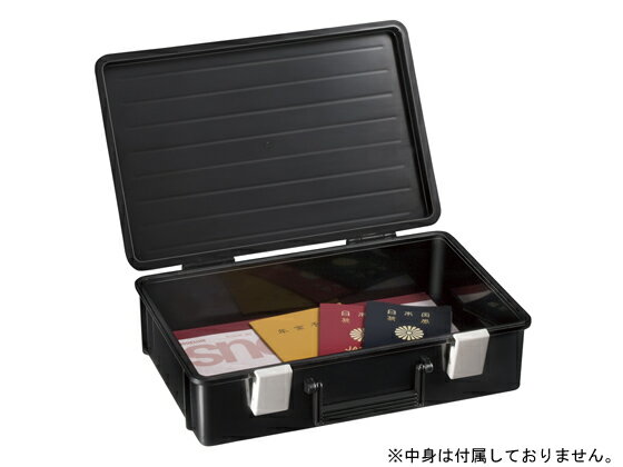 【仕様】●外寸/幅348×奥行240×高さ100mm●内寸/幅327×奥行212×高さ90mm●質量/785g●内容積/6.2リットル●本体材質/ABS樹脂●色/ブラック+ホワイト●耐水:水深30cmで5時間(メーカー社内試験)【注意事項】※金庫内へ収納を前提としているため、施錠機能はございません。