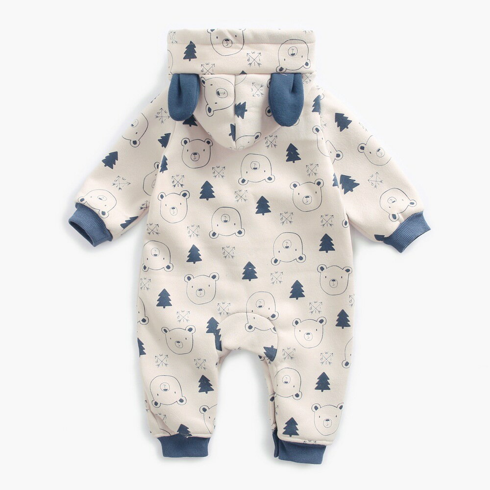 送料無料カバーオール ベビー服 女の子 新生児 男の子 幼児用 赤ちゃん 長袖 出産祝い 春物 秋物 冬物 フード付き アニマルプリント 厚着 耳つき 0〜24m かわいい